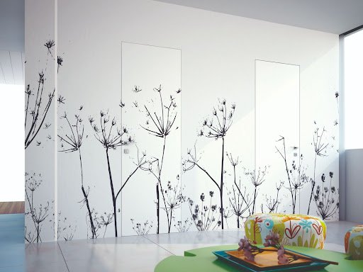 Obrázek: Tapeta plynule přechází ze stěny na dveřní křídlo – po zavření dveře zcela splývají s okolím. Zdroj: eclisse.cz
